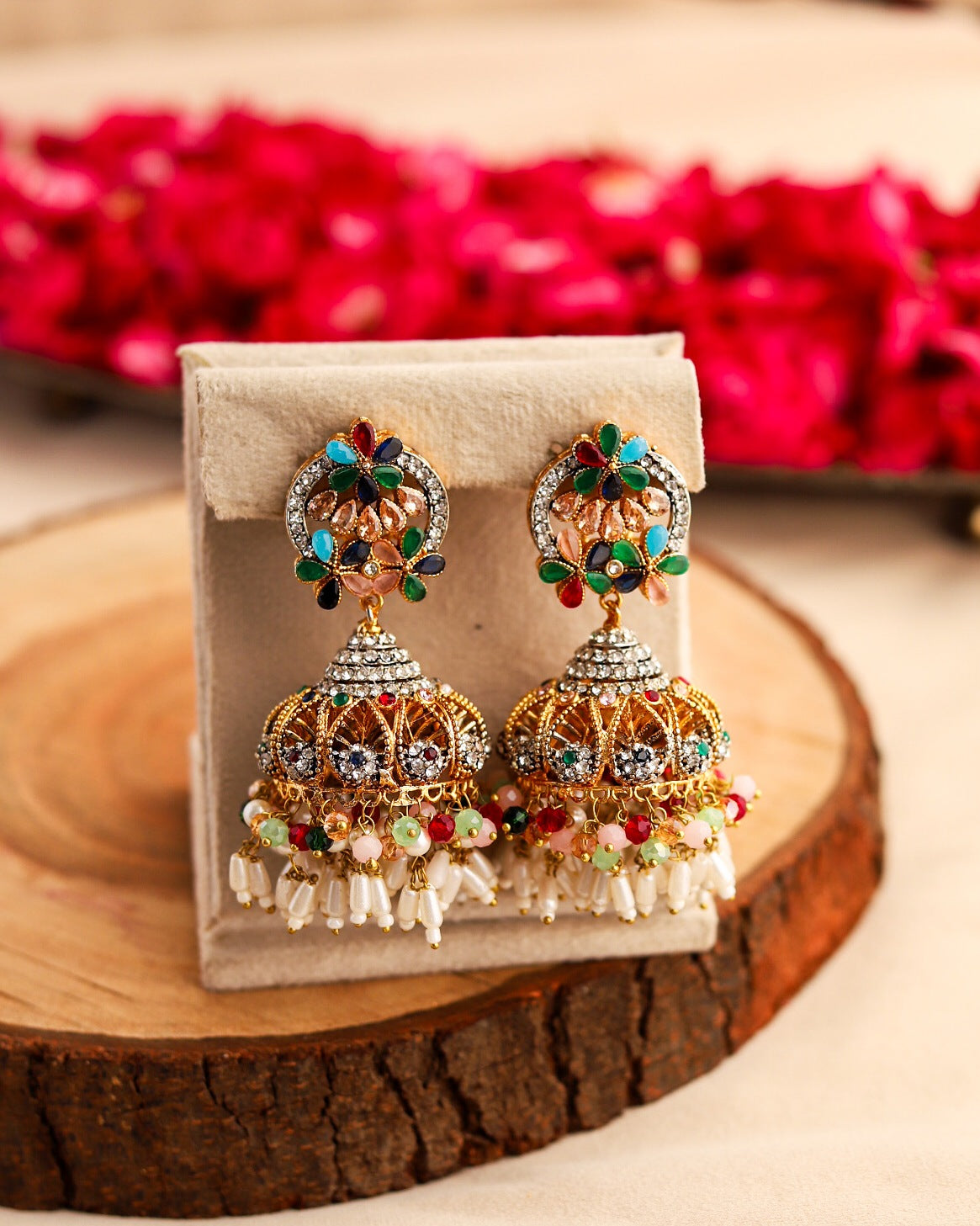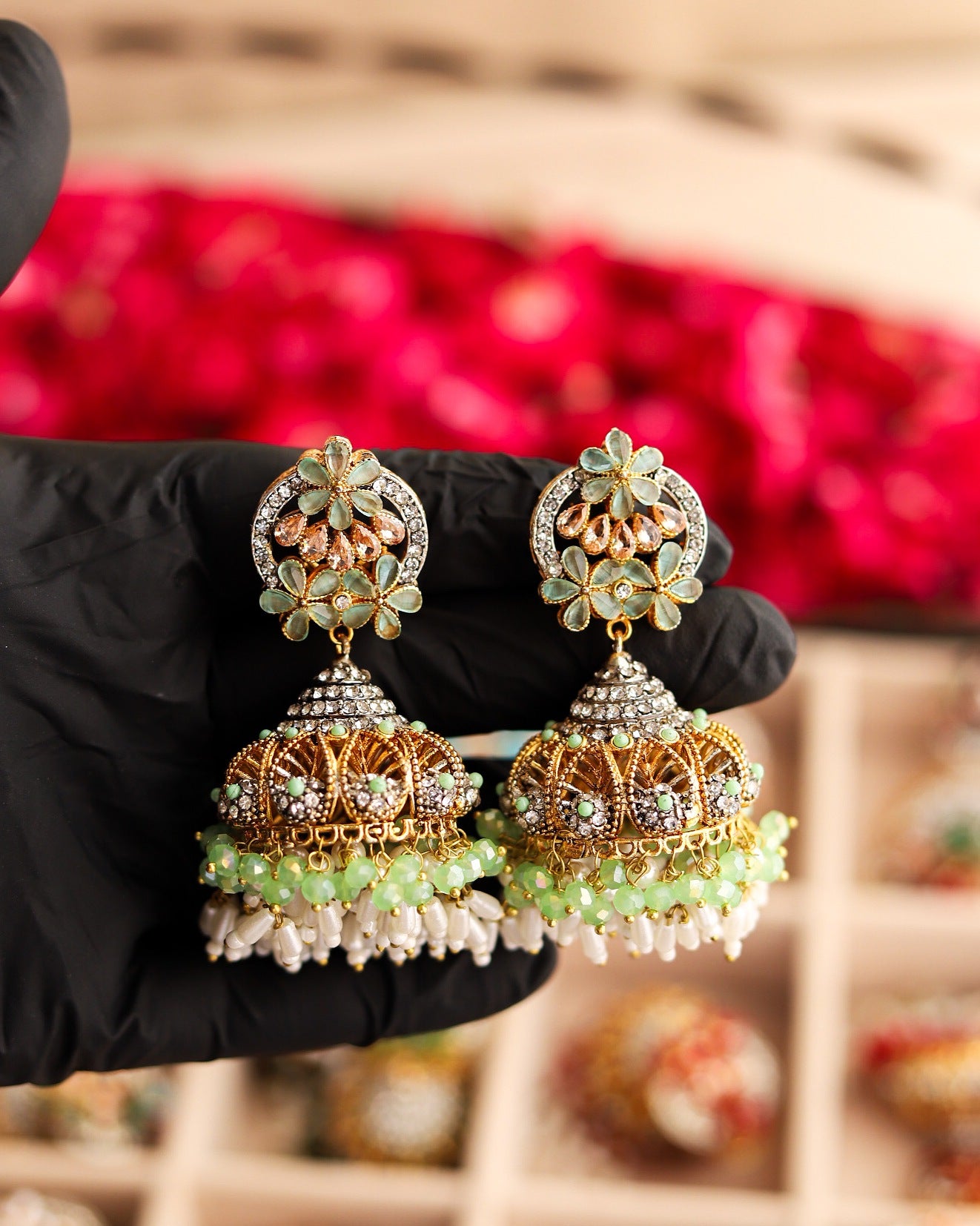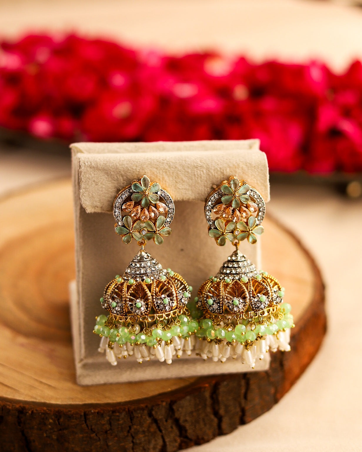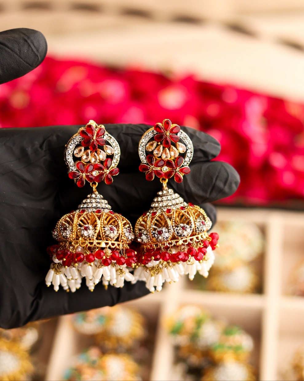 Add a traditional touch with these beautiful Chumka earrings in vibrant colors. Available in shades like red, Black, green, mint, Pearl White, Multi, Skyblue, Pink, Champagne, and Silver to match any outfit. Their intricate design and dangling style make them perfect for festive and casual looks.