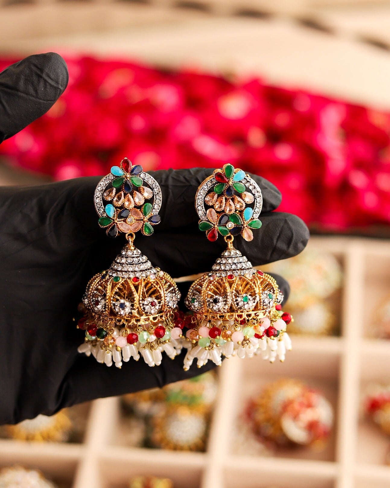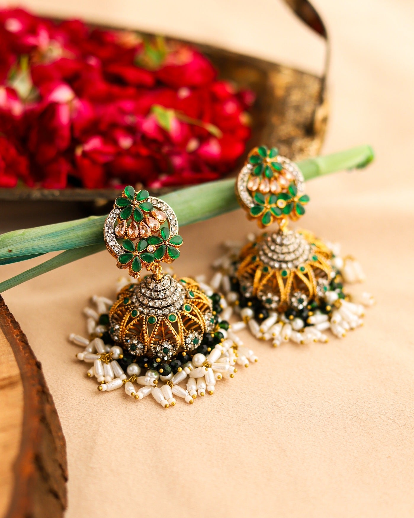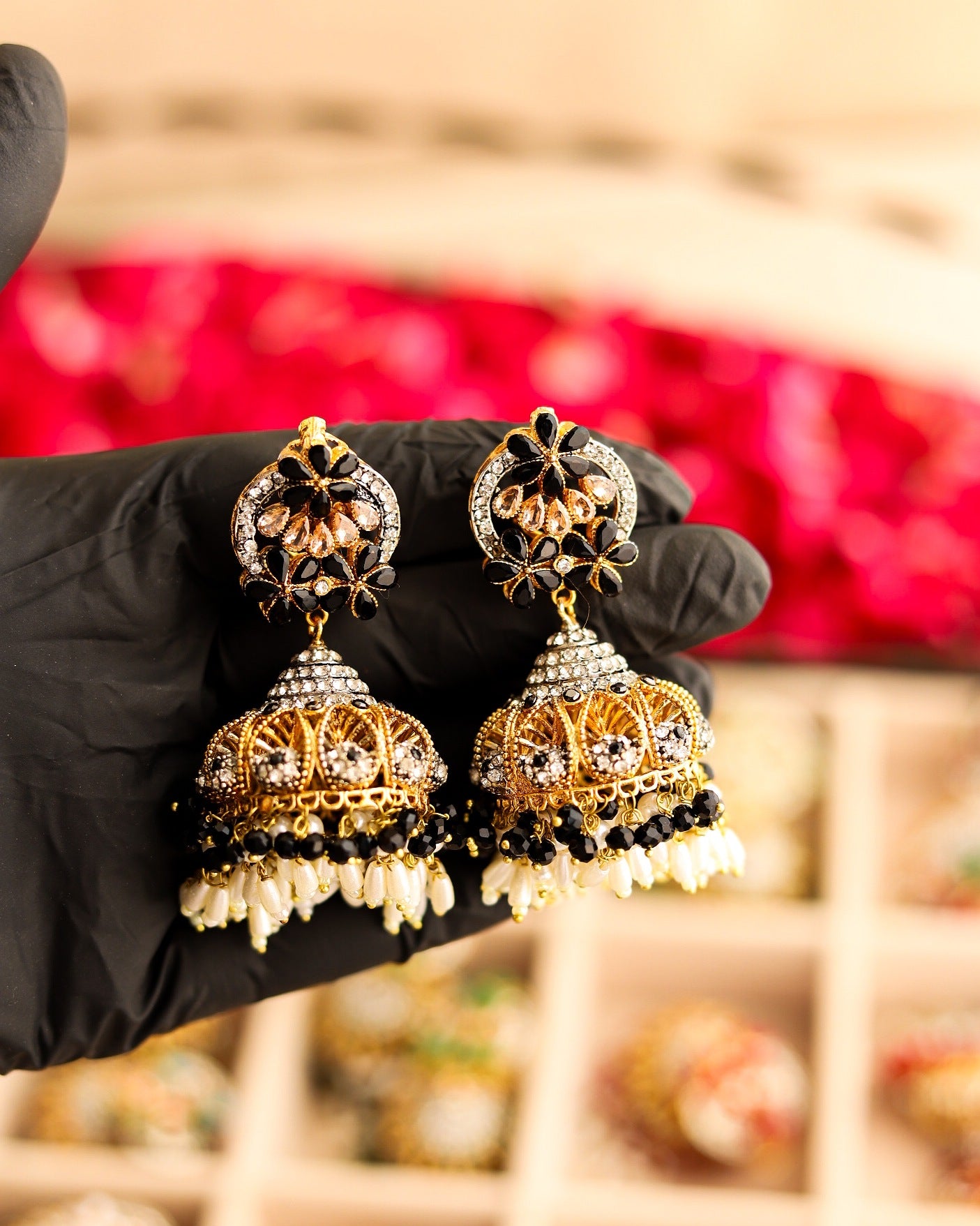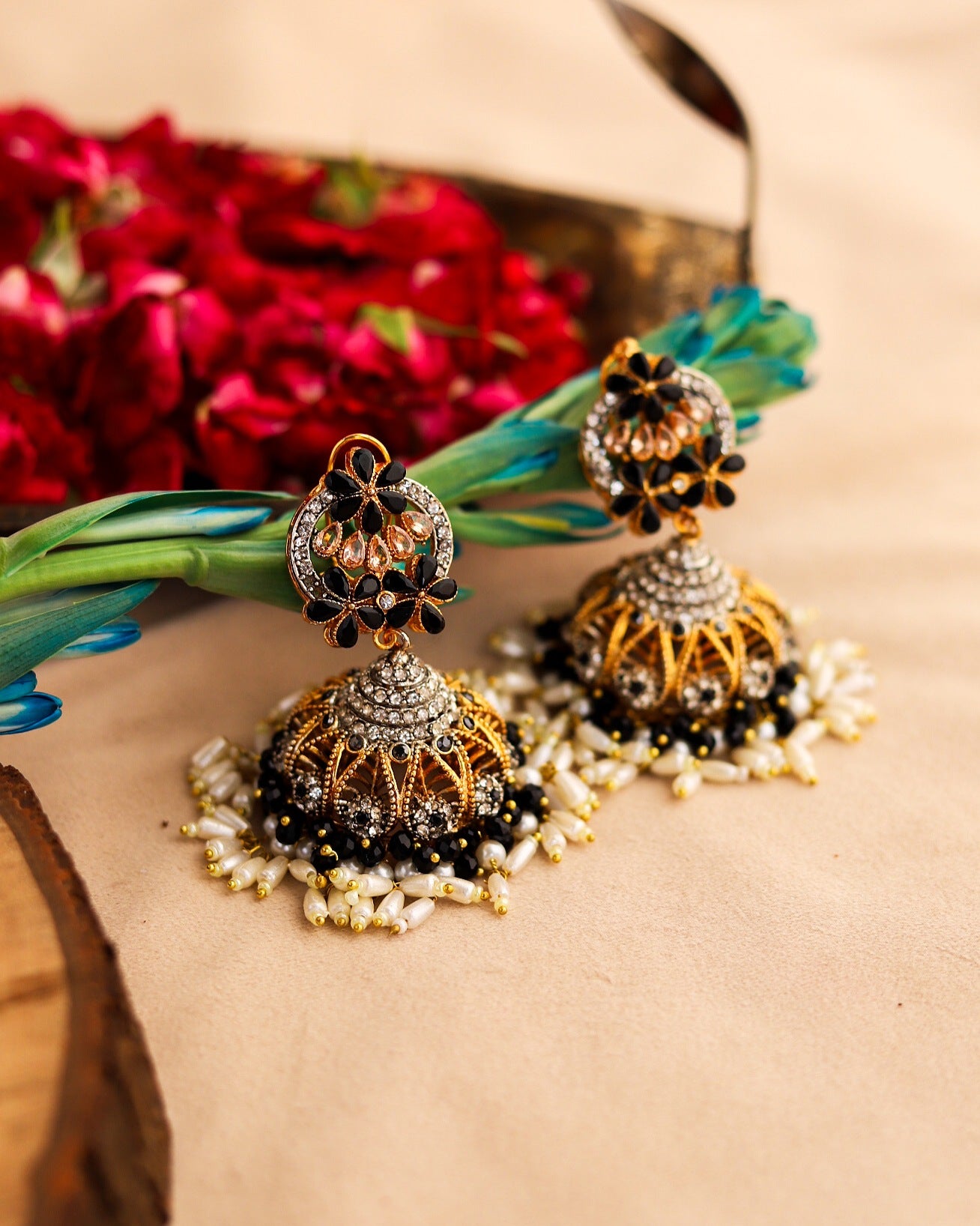 Add a traditional touch with these beautiful Chumka earrings in vibrant colors. Available in shades like red, Black, green, mint, Pearl White, Multi, Skyblue, Pink, Champagne, and Silver to match any outfit. Their intricate design and dangling style make them perfect for festive and casual looks.