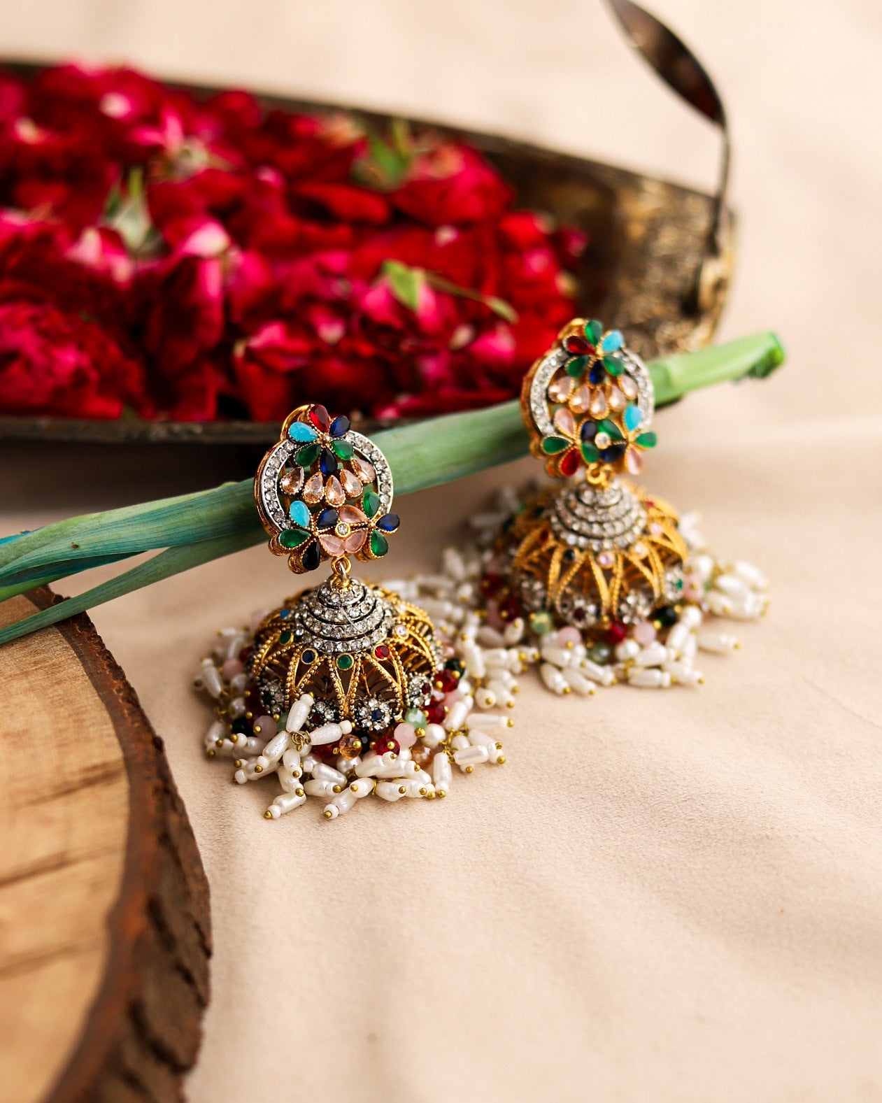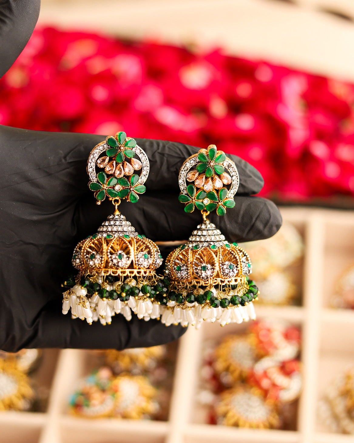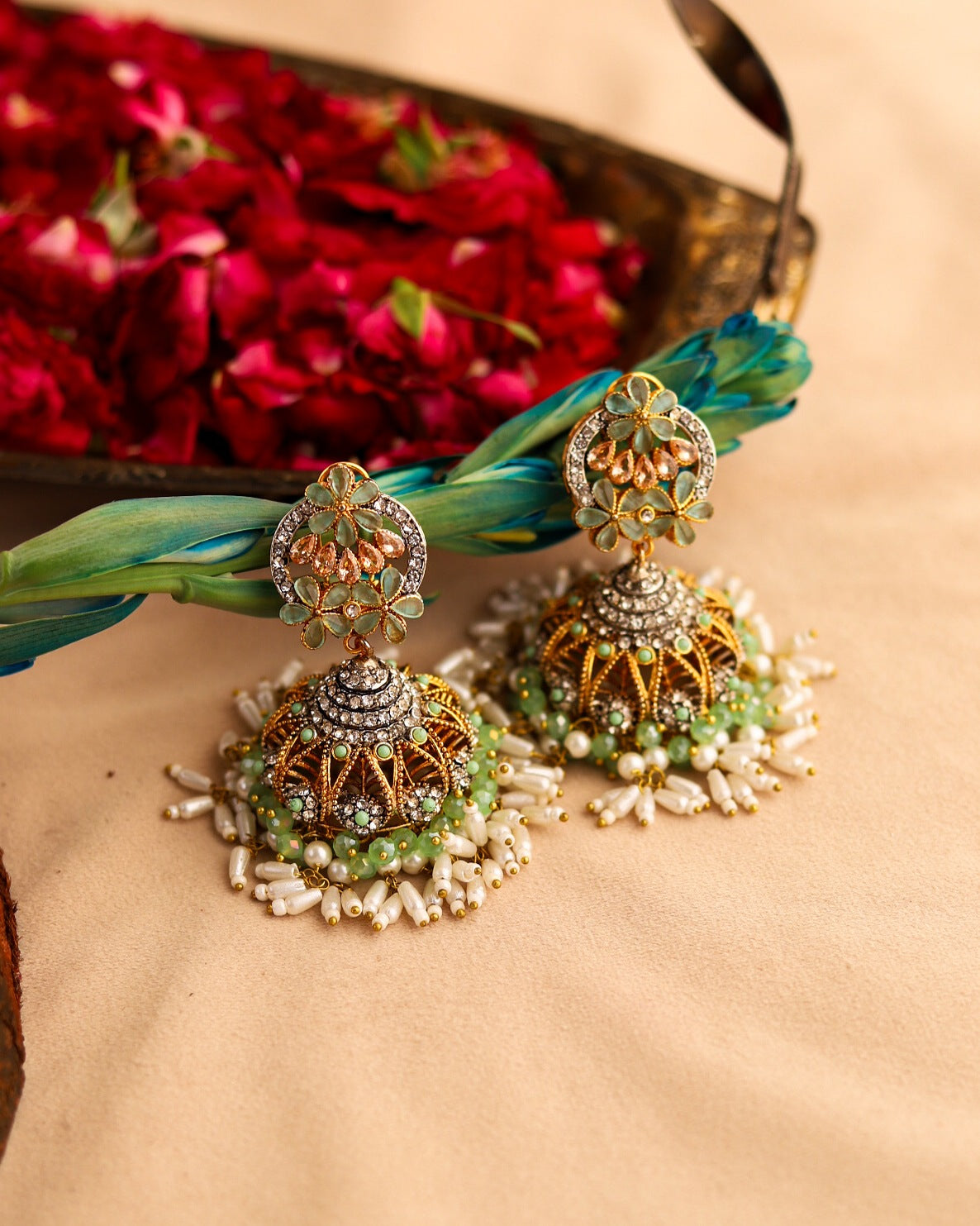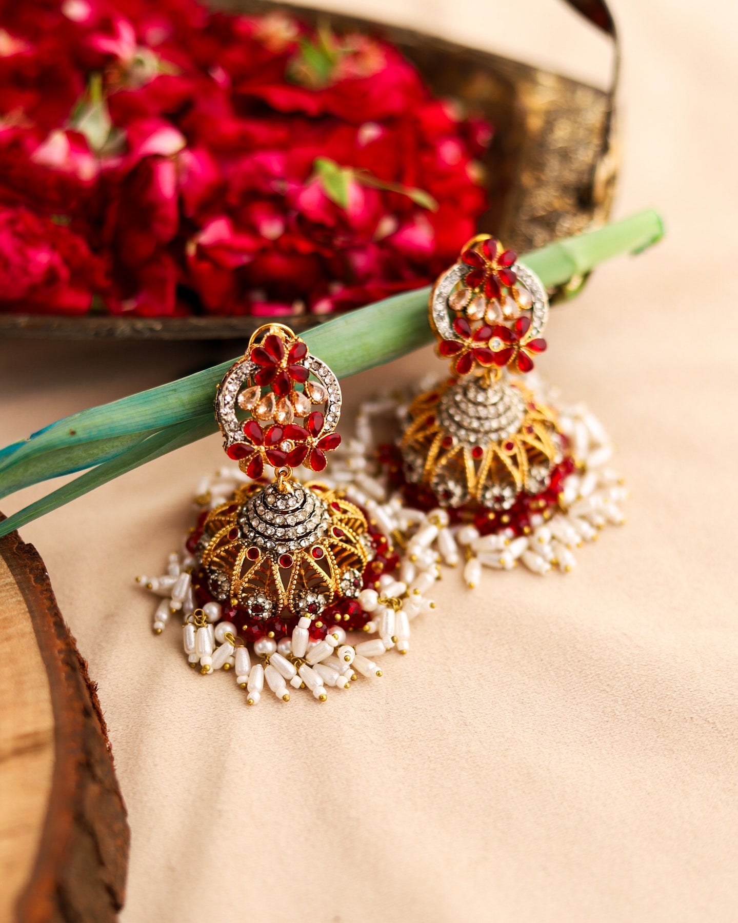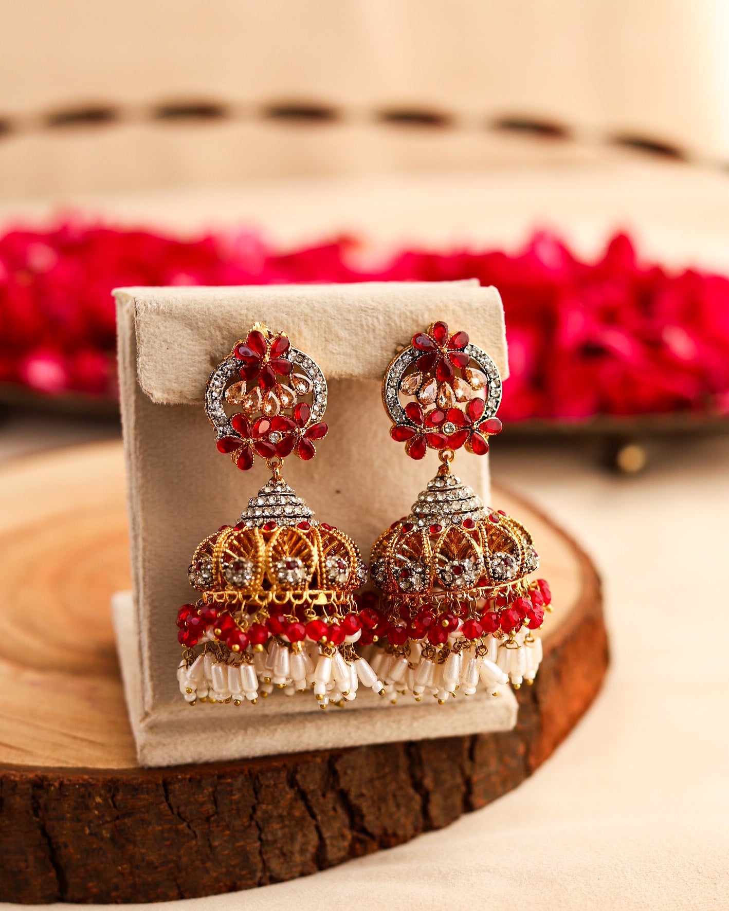 Add a traditional touch with these beautiful Chumka earrings in vibrant colors. Available in shades like red, Black, green, mint, Pearl White, Multi, Skyblue, Pink, Champagne, and Silver to match any outfit. Their intricate design and dangling style make them perfect for festive and casual looks.