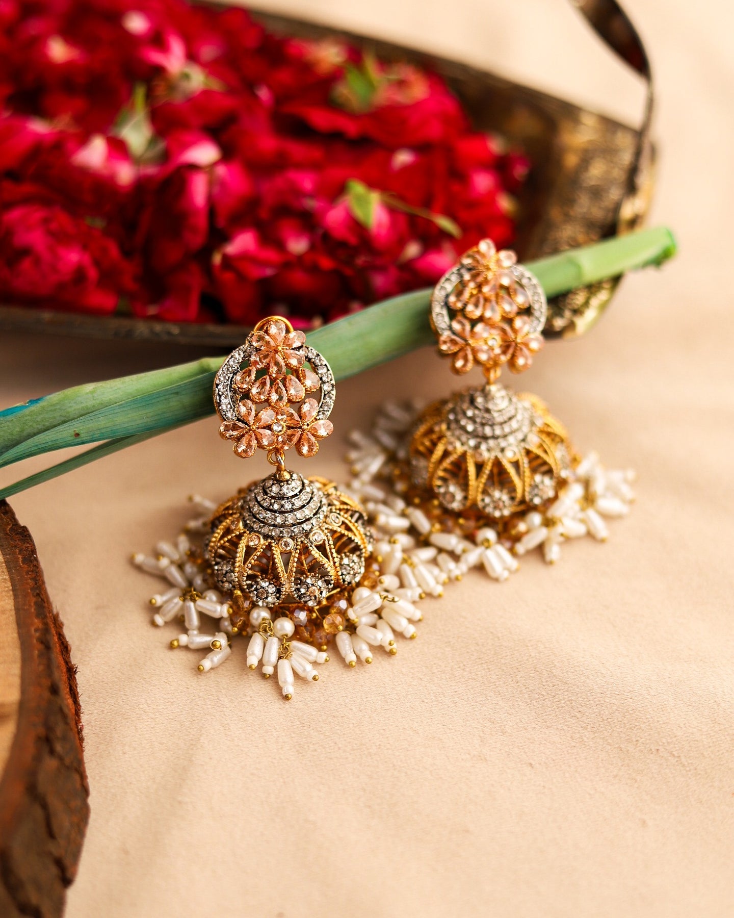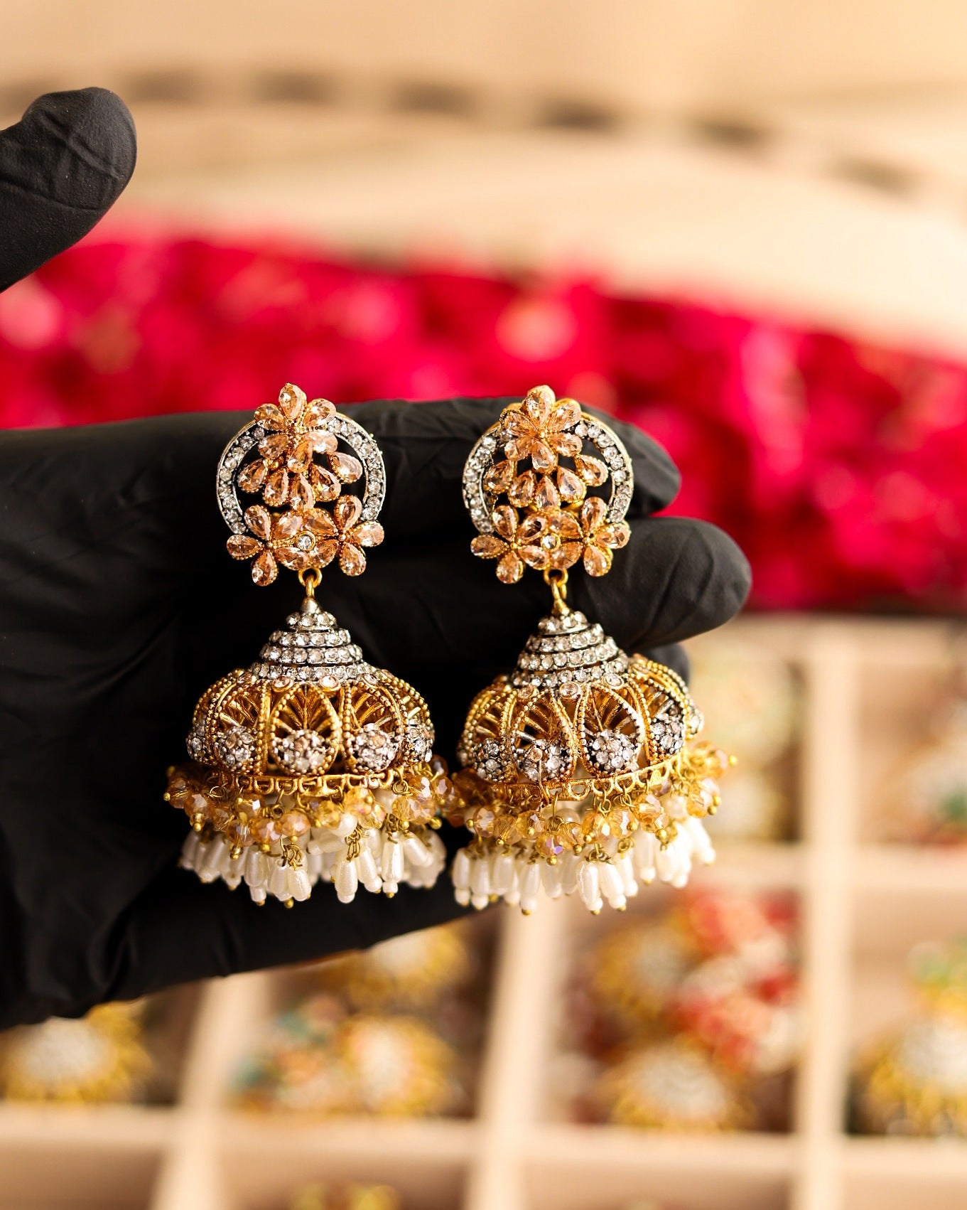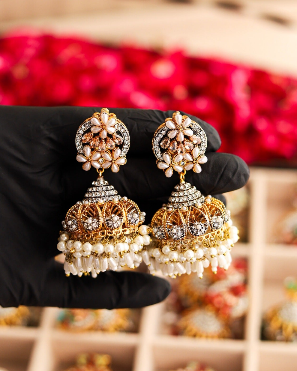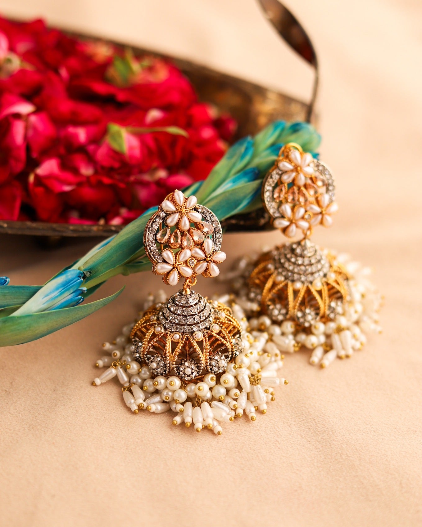 Add a traditional touch with these beautiful Chumka earrings in vibrant colors. Available in shades like red, Black, green, mint, Pearl White, Multi, Skyblue, Pink, Champagne, and Silver to match any outfit. Their intricate design and dangling style make them perfect for festive and casual looks.
