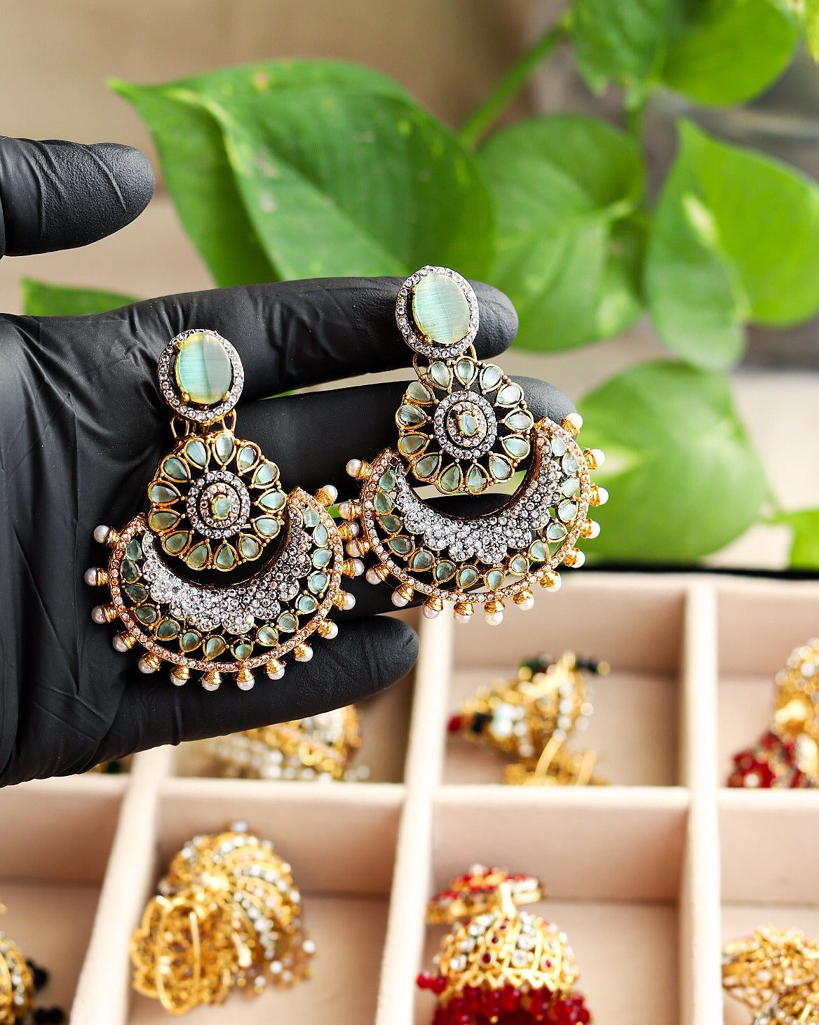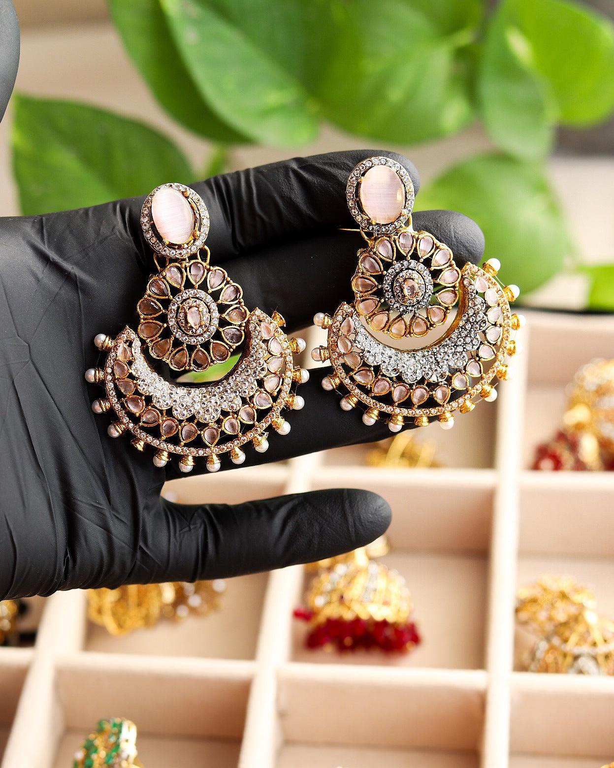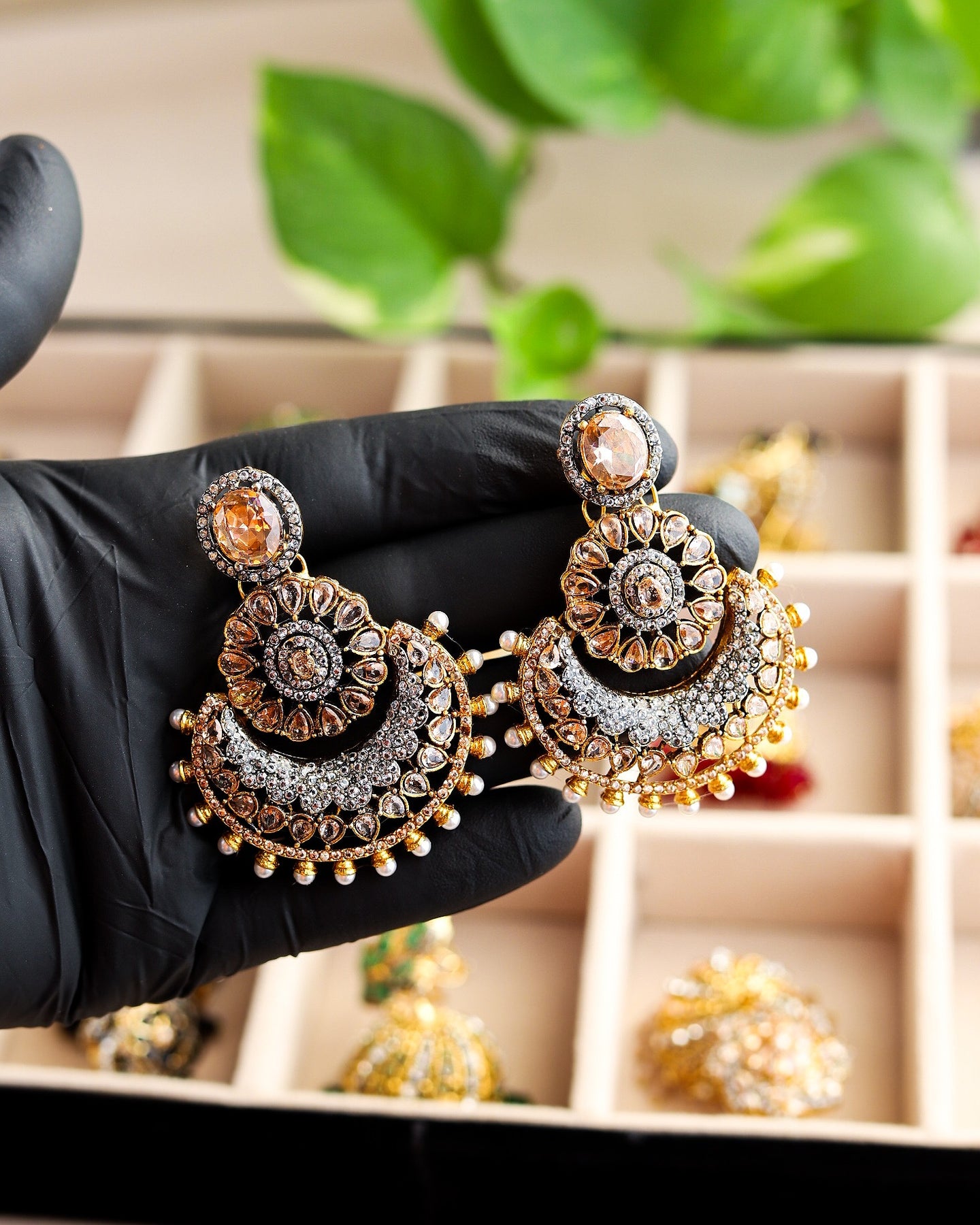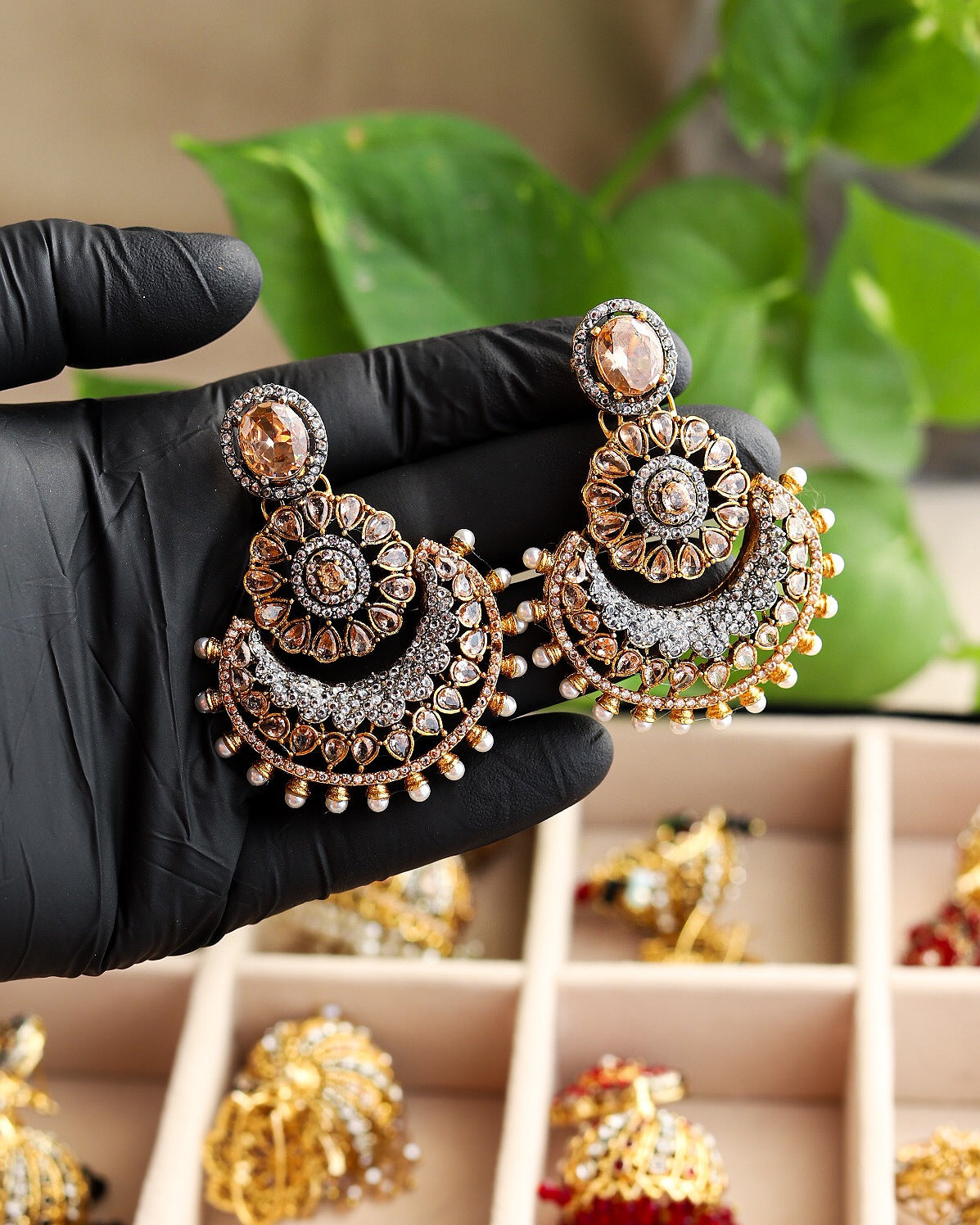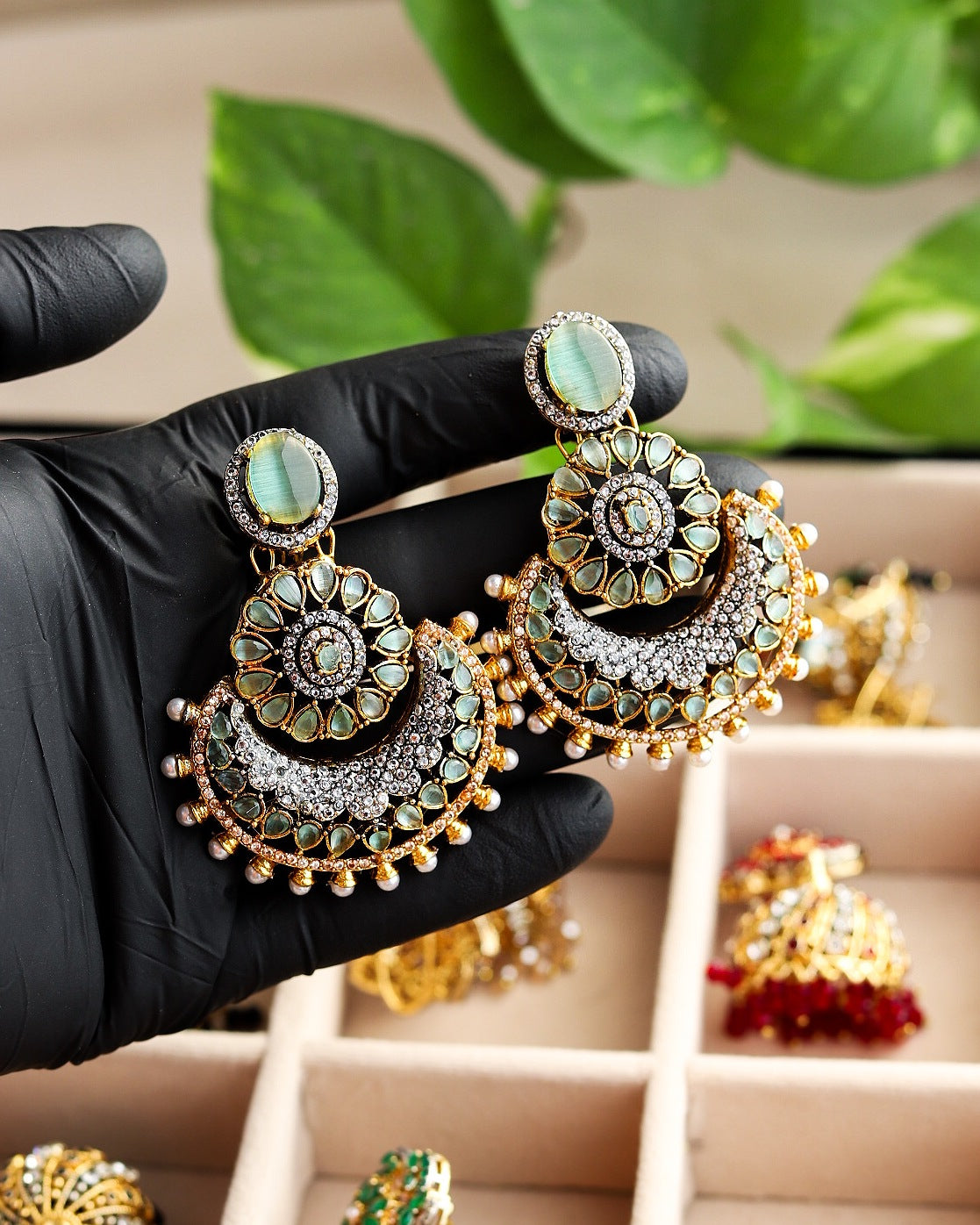 Elevate your style with these mesmerizing multitoned jhumka earrings. A symphony of colors and beads that dance with every movement, adding a touch of charm to any outfit.