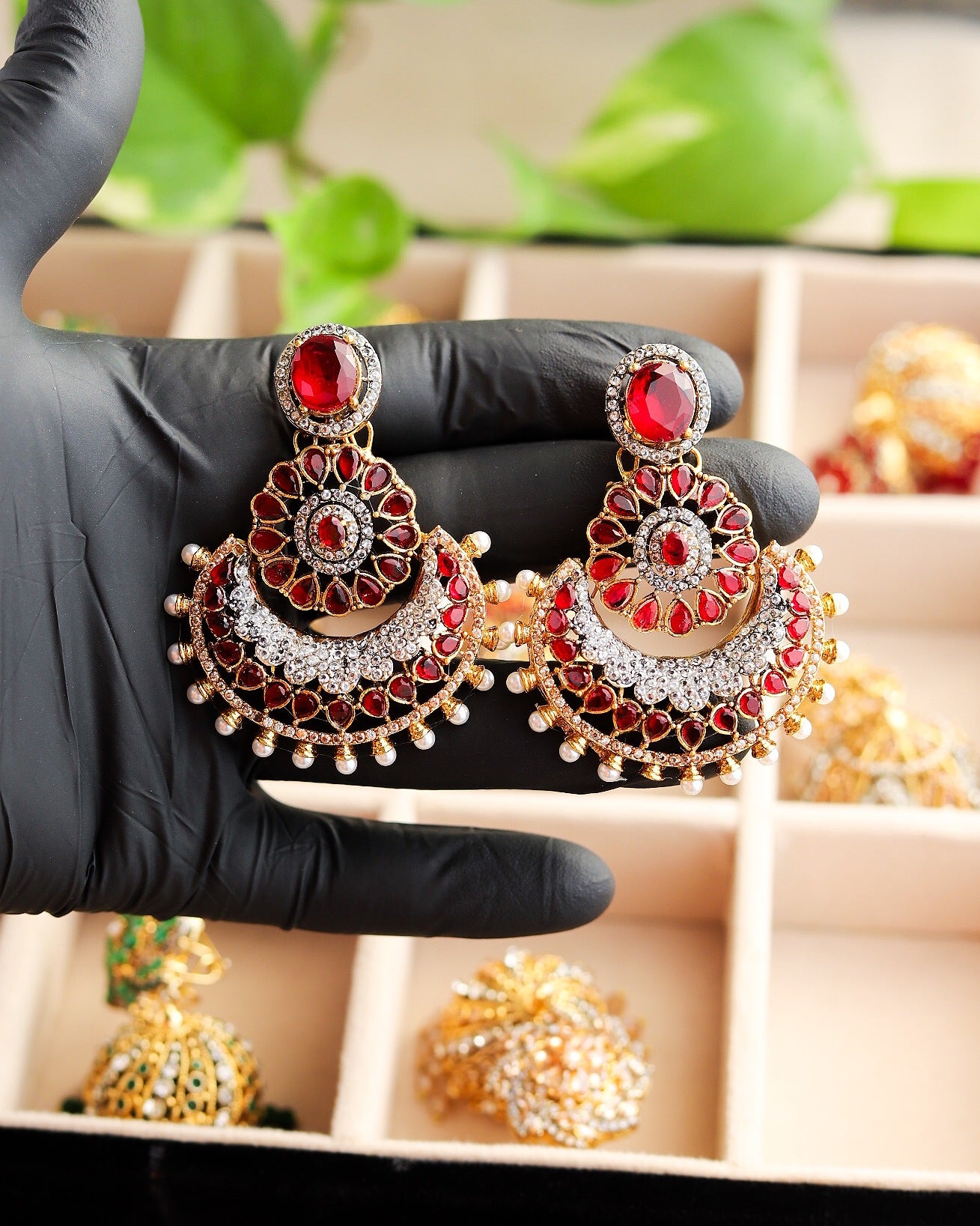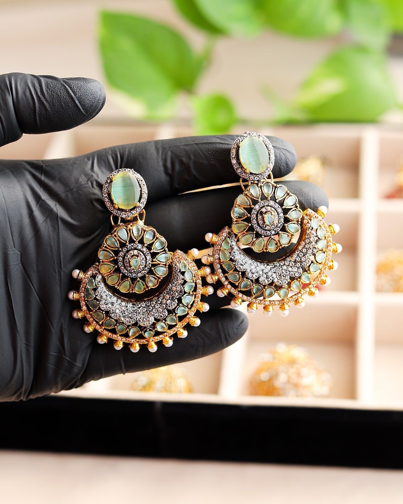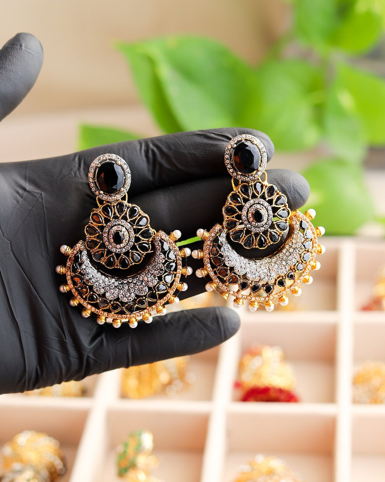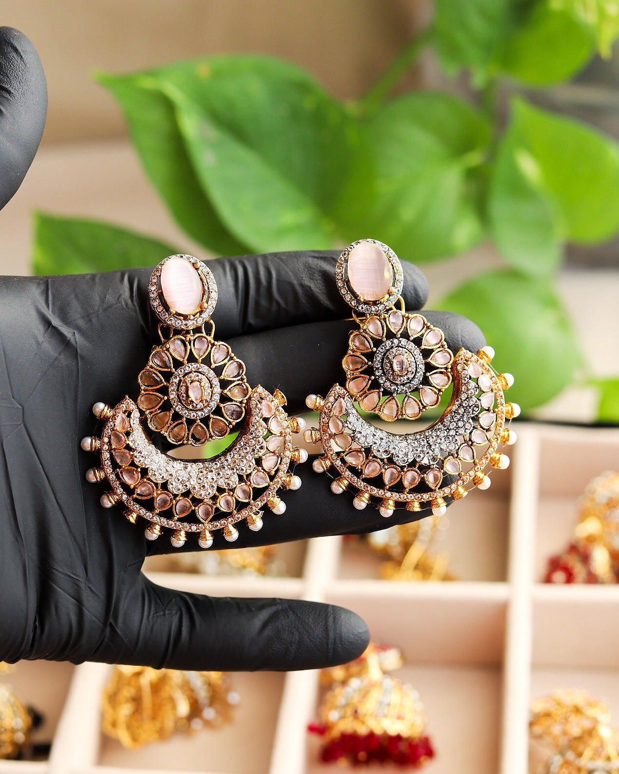 Elevate your style with these mesmerizing multitoned jhumka earrings. A symphony of colors and beads that dance with every movement, adding a touch of charm to any outfit.