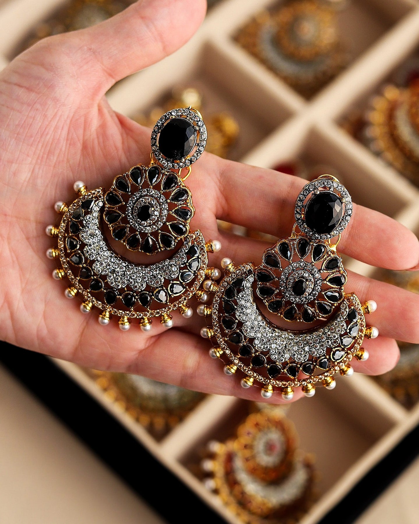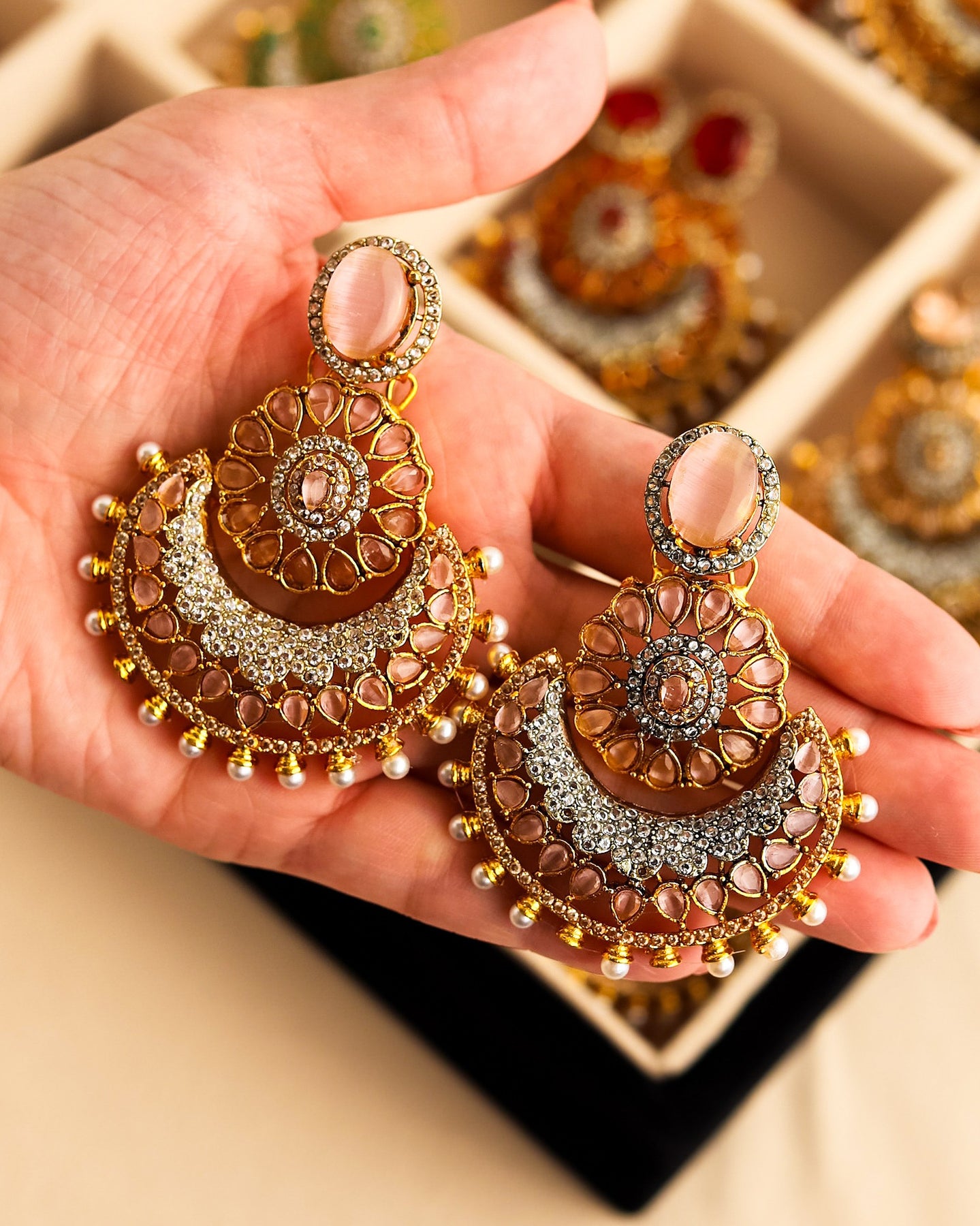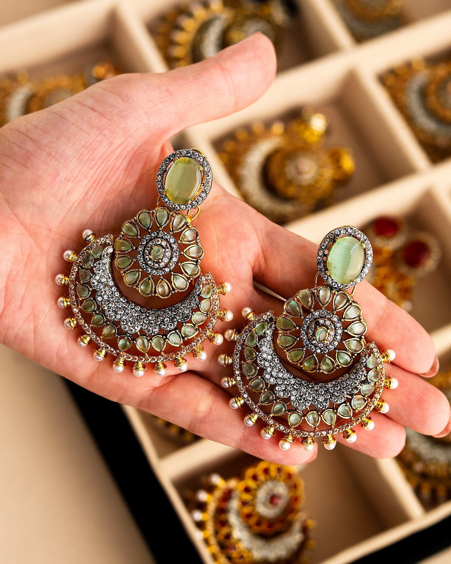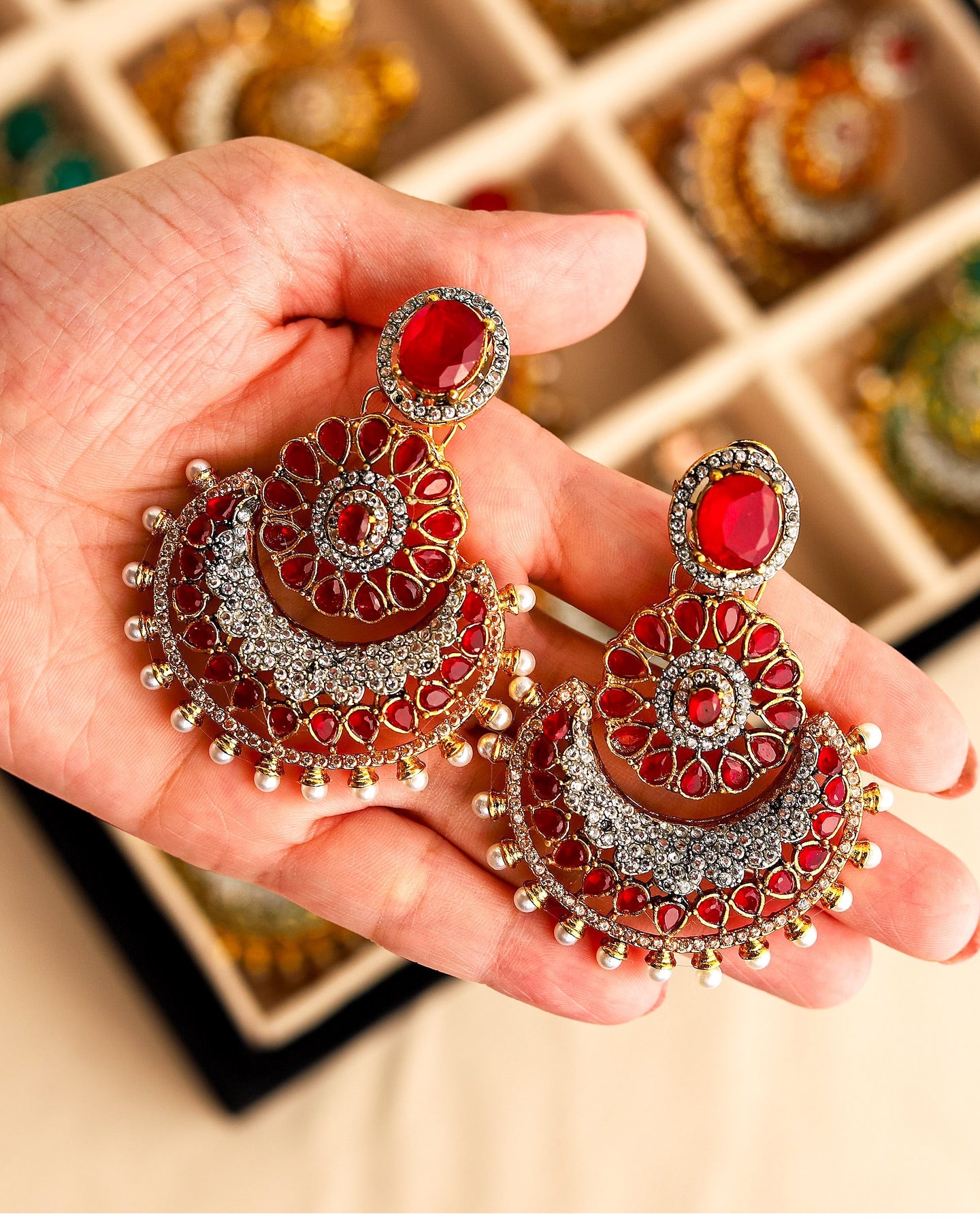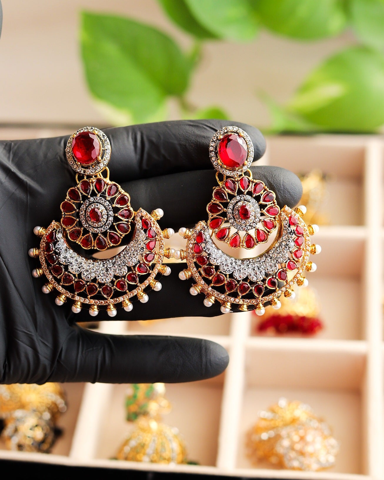 Elevate your style with these mesmerizing multitoned jhumka earrings. A symphony of colors and beads that dance with every movement, adding a touch of charm to any outfit.