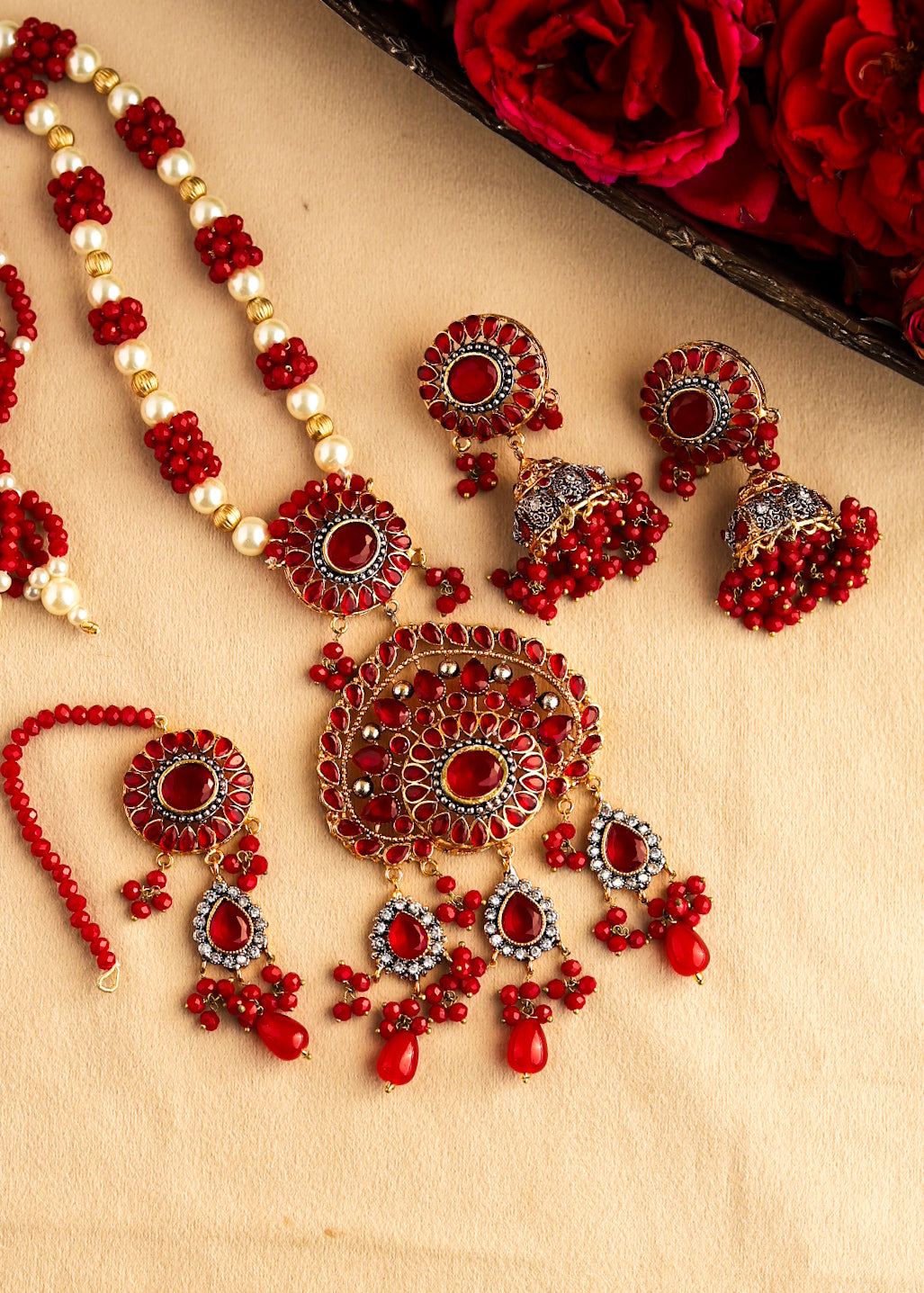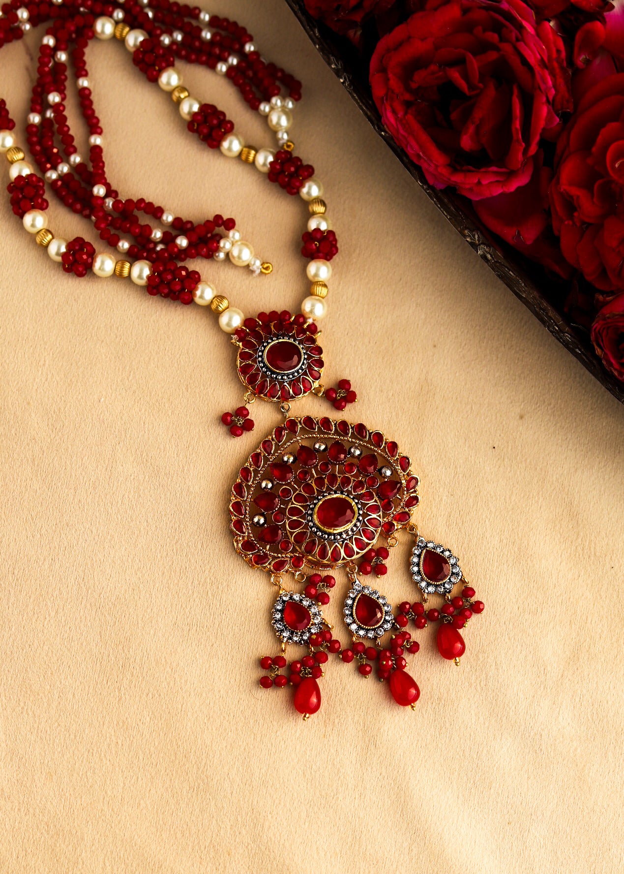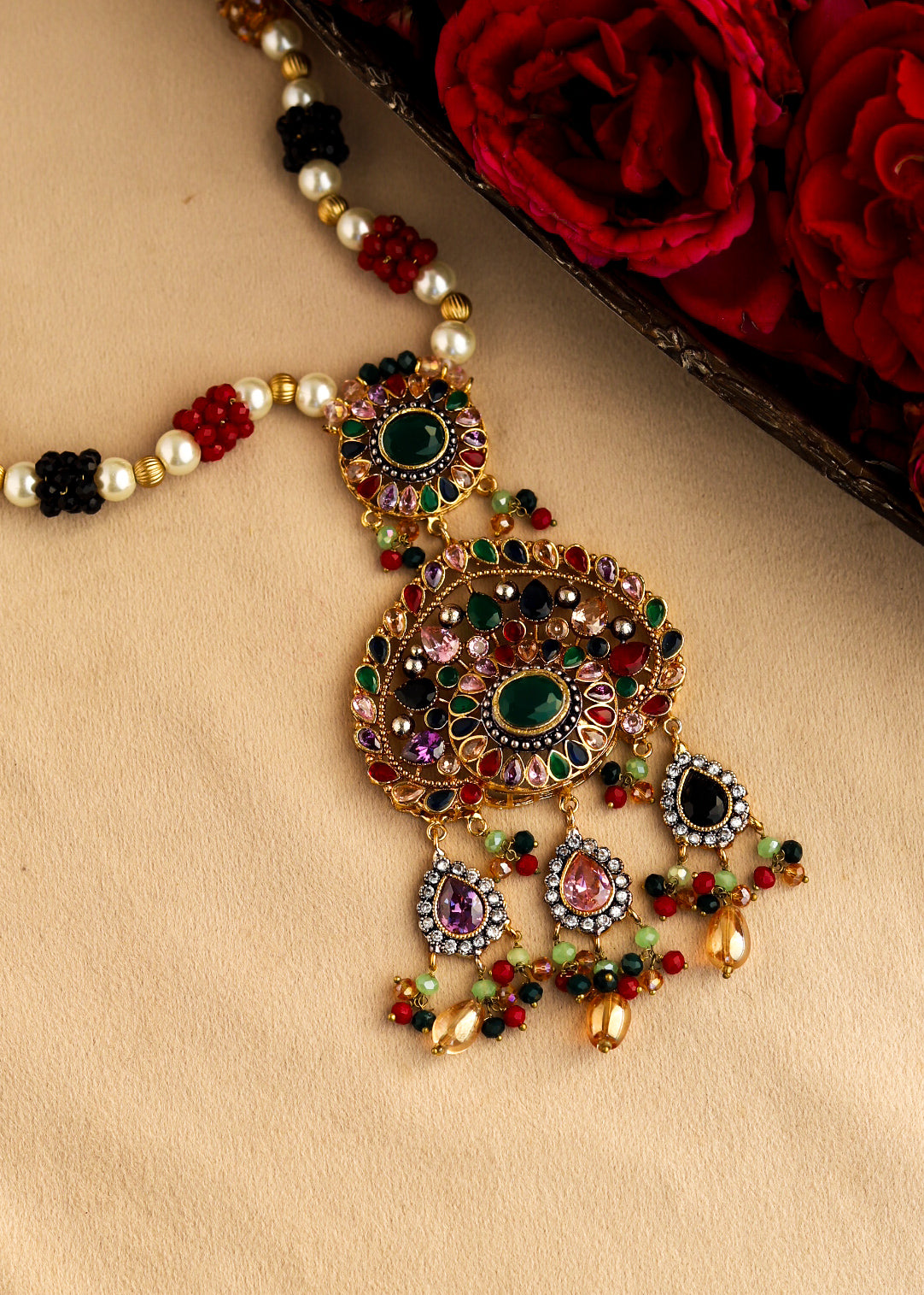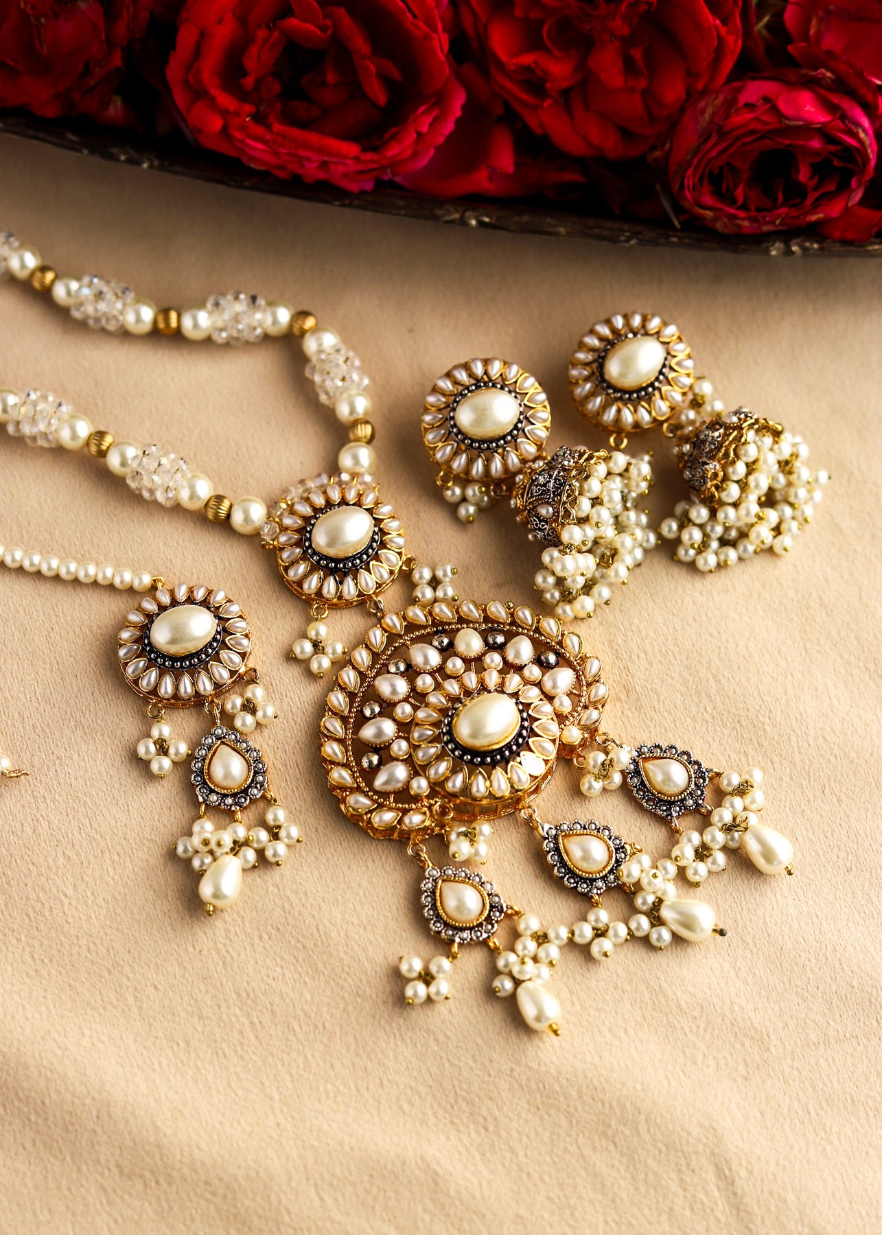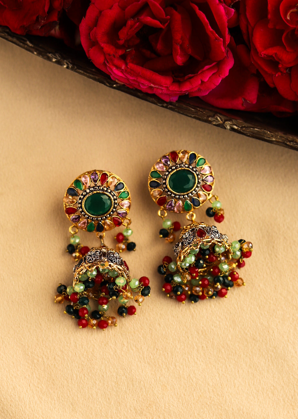 Traditional mala paired with graceful earrings âĻ A perfect blend of heritage, color, and timeless charm Elevate your ethnic look with classic elegance ð