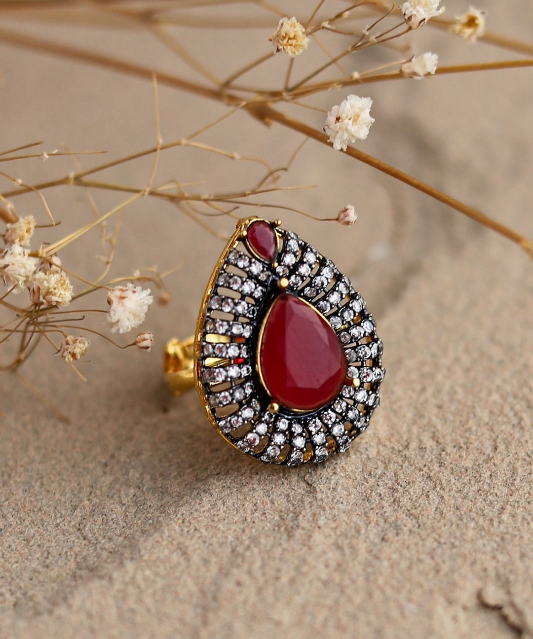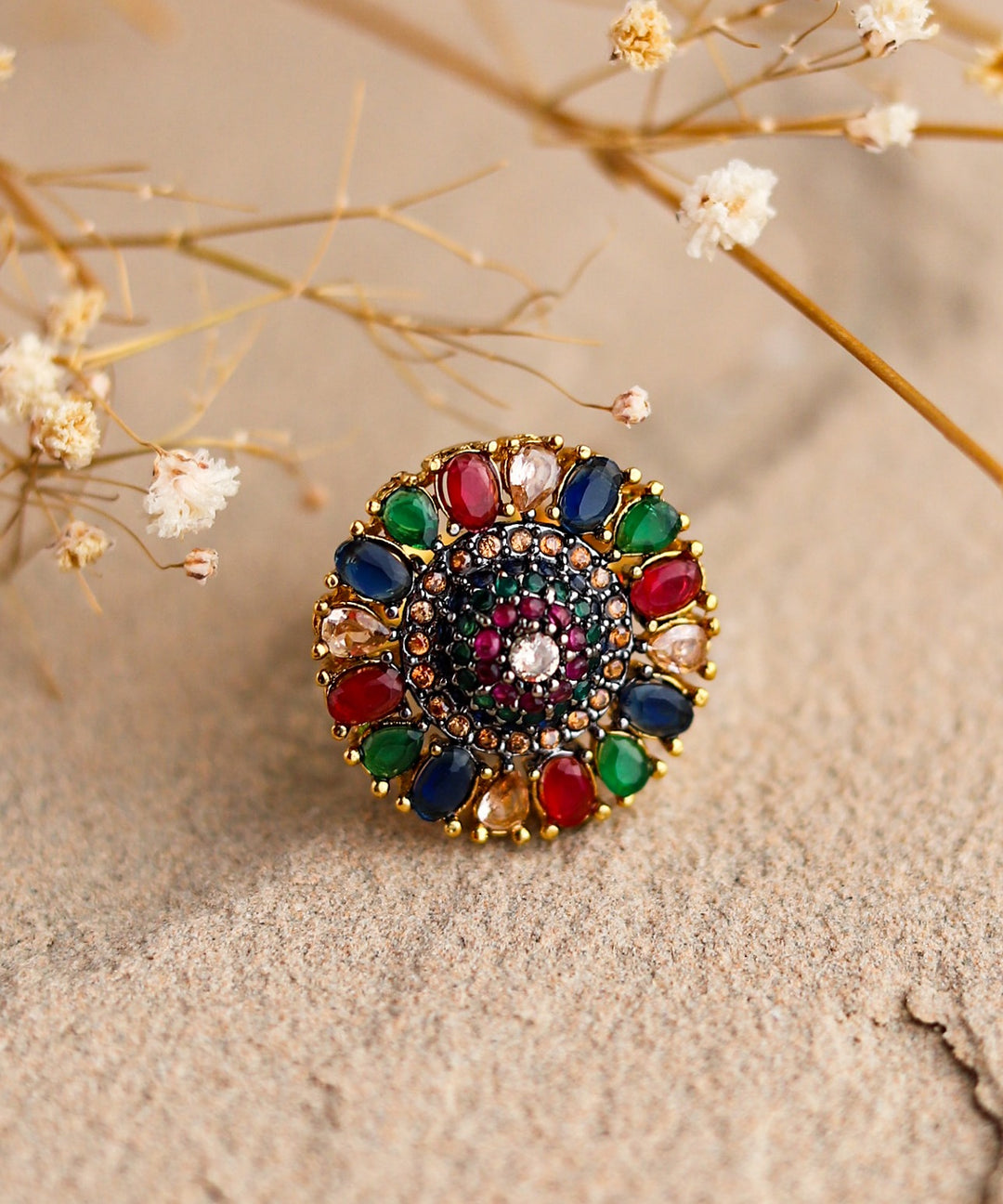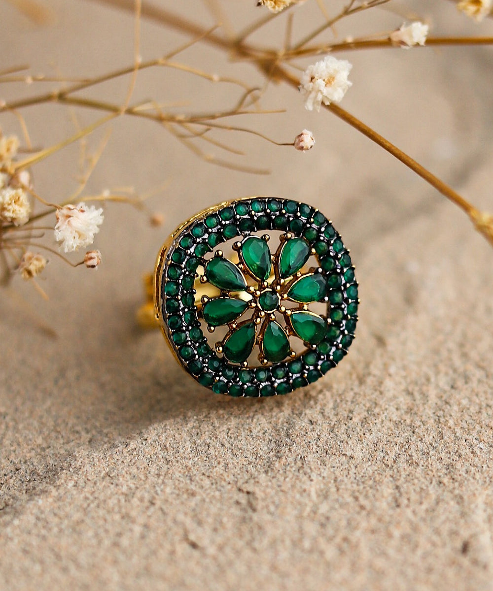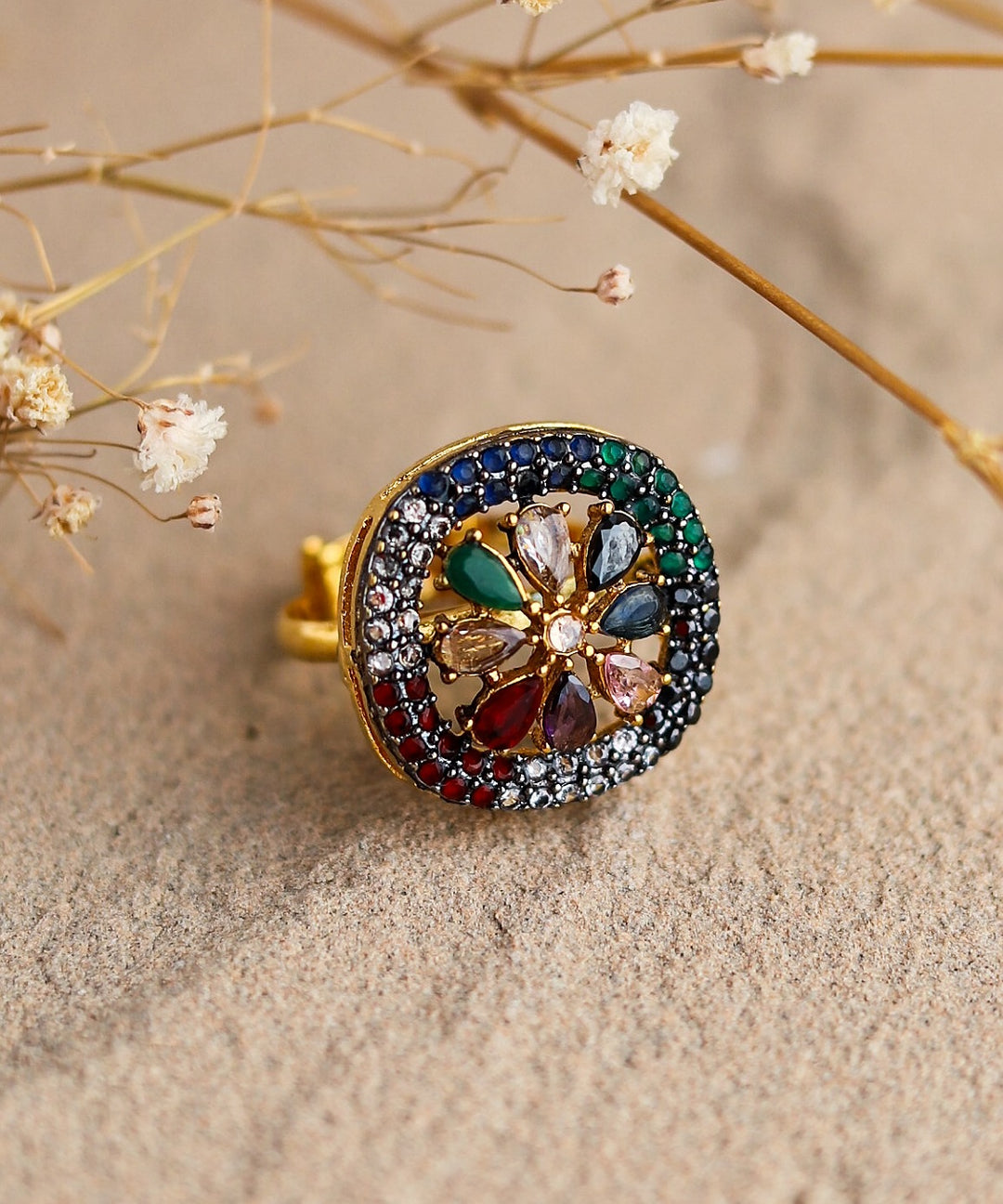 Elevate your elegance with this exquisitely crafted traditional ring, adorned with intricate detailing.